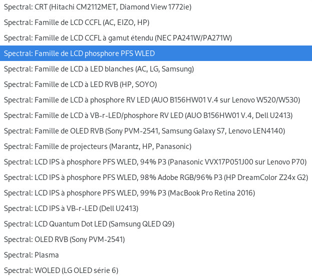 DisplayCAL propose des corrections spectrales génériques de type .ccss pour différents types d’écran. Les fichiers sont stockés dans .local/share/ArgyllCMS/ voire \Users\legau\AppData\Roaming\ArgyllCMS\